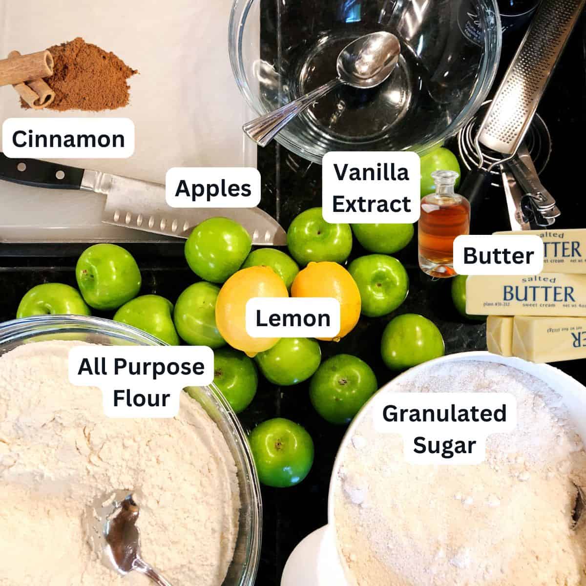 - Add your sliced apples, cinnamon, sugar, vanilla and lemon juice to a large bowl and mix well then set aside.3 Large granny smith or honey crisp apples, 4 tablespoon Granulated sugar, 1 teaspoon Lemon Juice, ½ teaspoon vanilla extract, 1 ½ teaspoon Ground Cinnamon