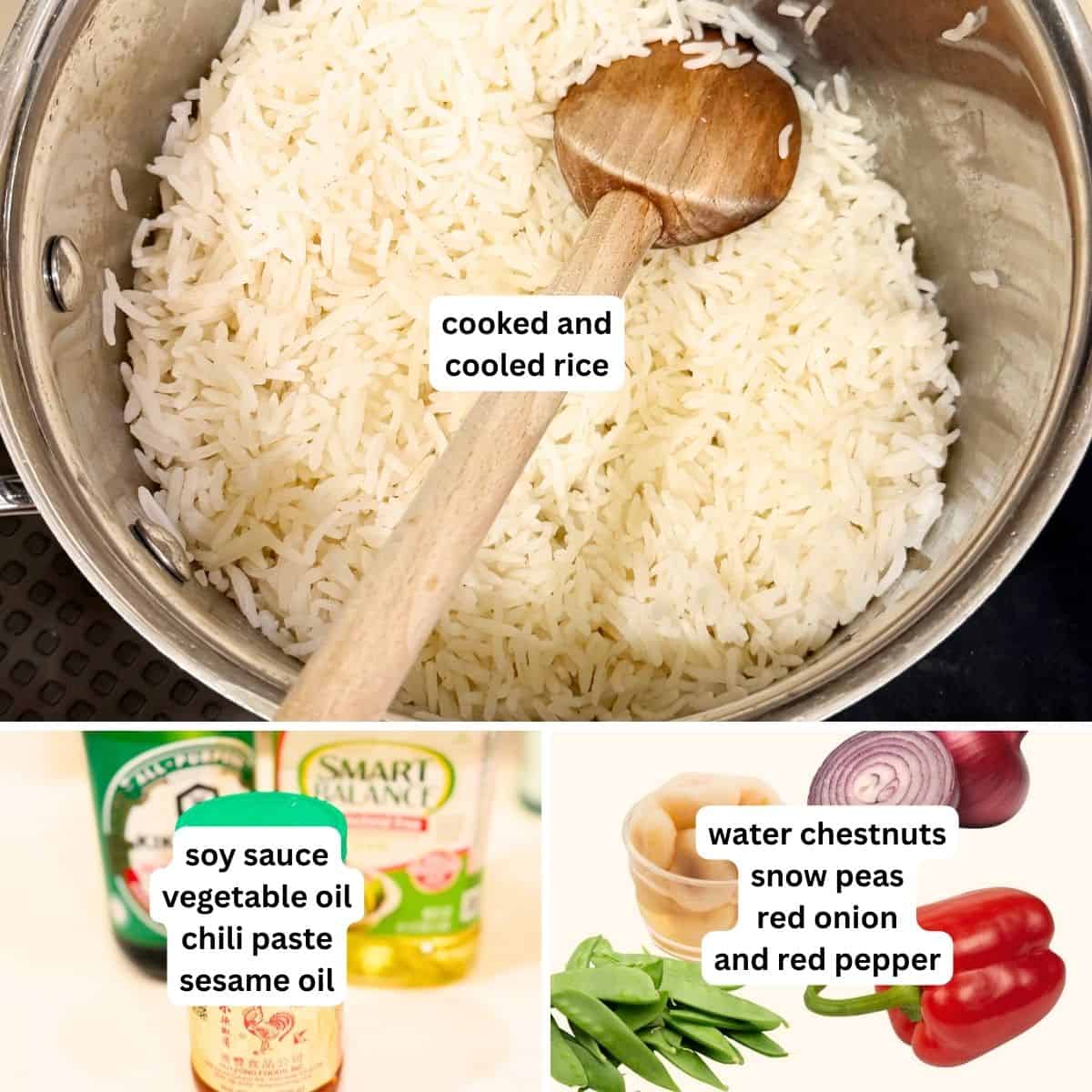 - Cooked And Cooled White Rice: You can use basmati, jasmine or any white rice. Cooled-down rice helps absorb the flavors of the sauce and it will change the texture of the final product a bit. You can make your rice ahead of time if you want. I usually won't remember to do this step (or have time) so I will make the rice when I am ready to make the fried rice recipe.